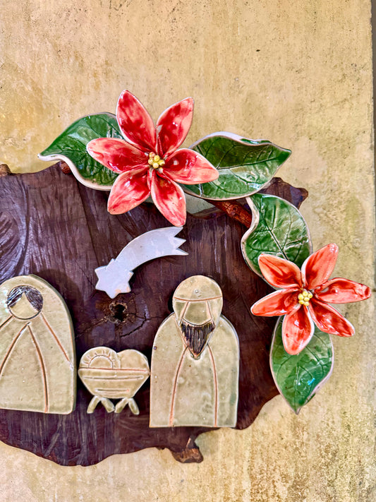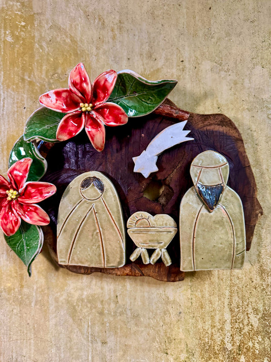 Sold outNativity with Poinsettias Wall Hang