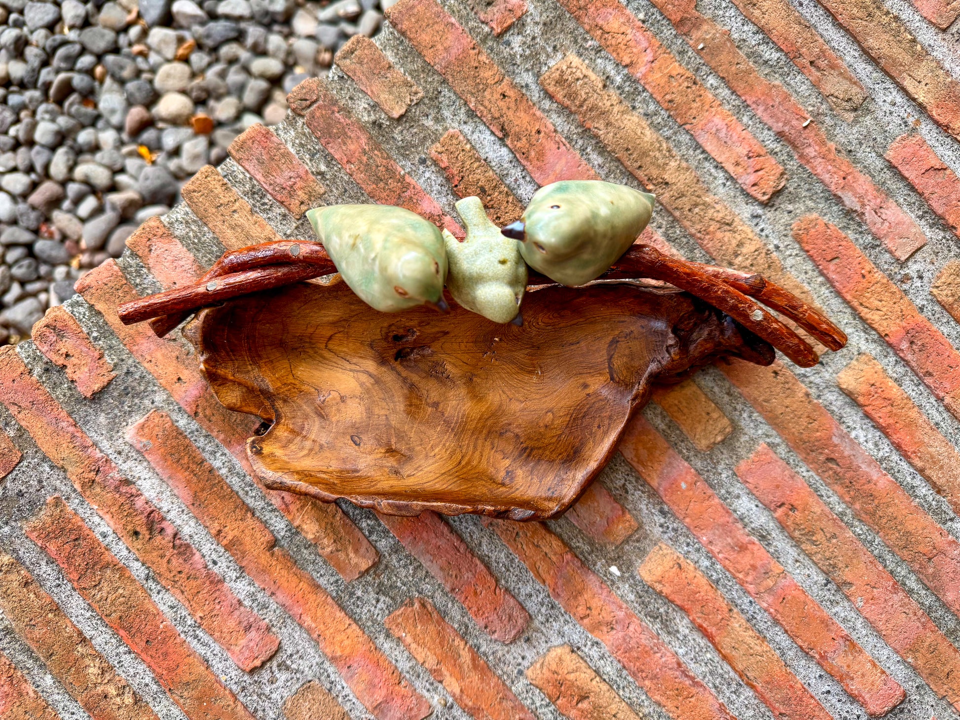 Birds on Teakwood Bowl Tabletop