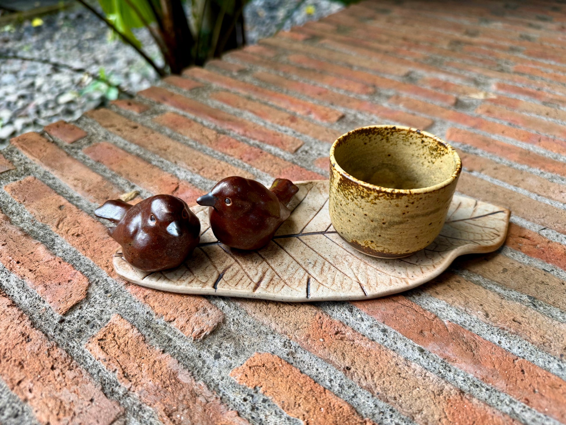 Brown Birds on Leaf Coaster / Candle Holder / Paper Weight / Tabletop
