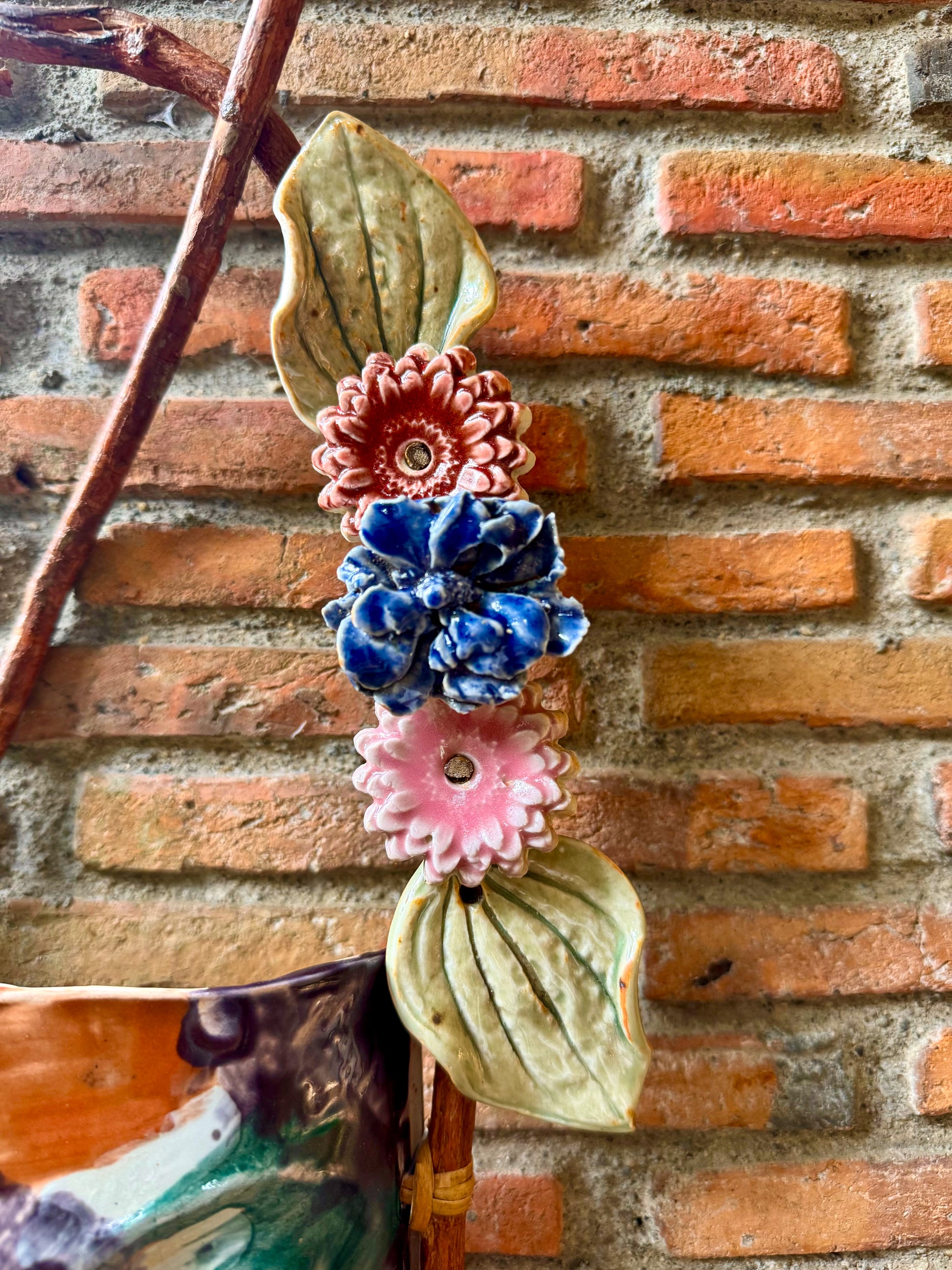 Mask w/ Flowers Wall Hang (Multicolored Glaze)