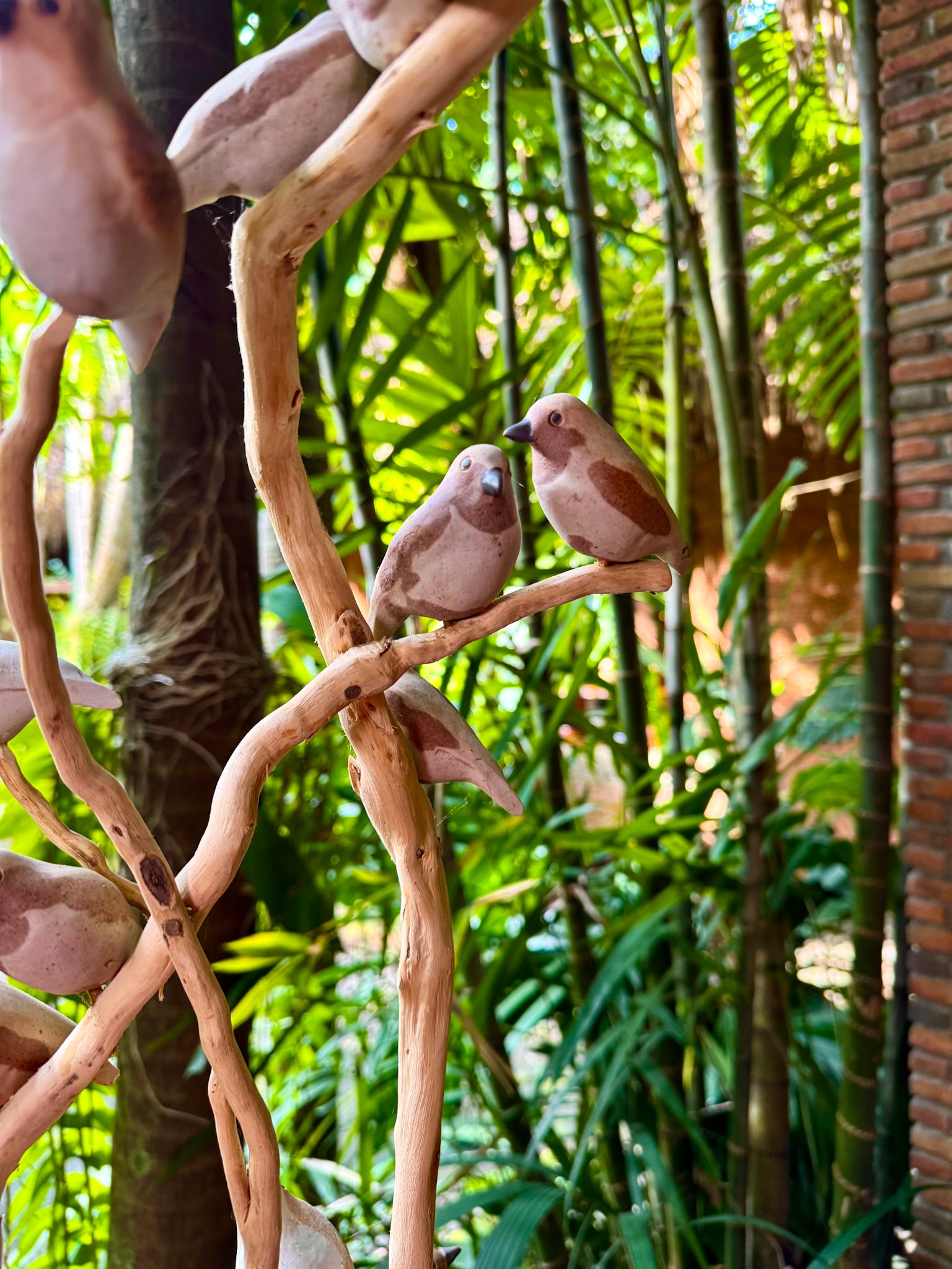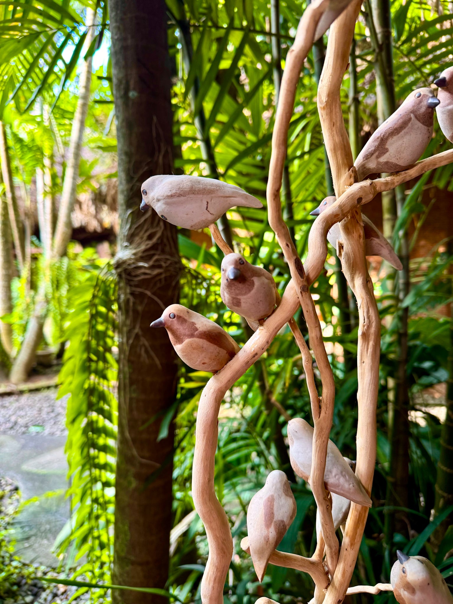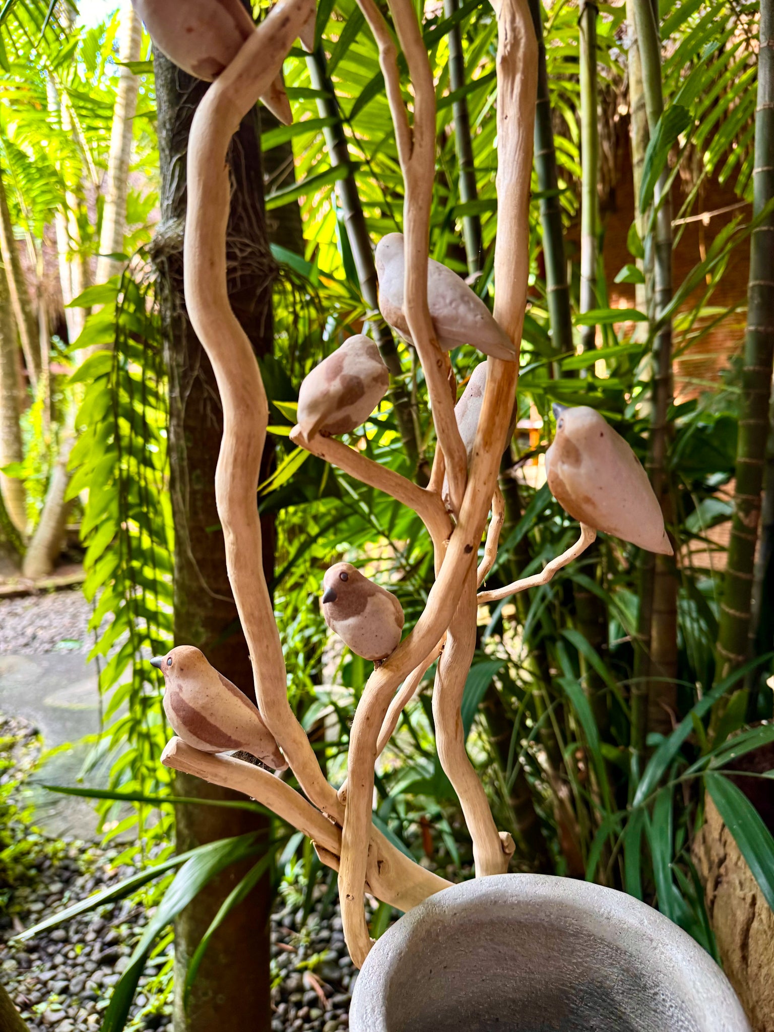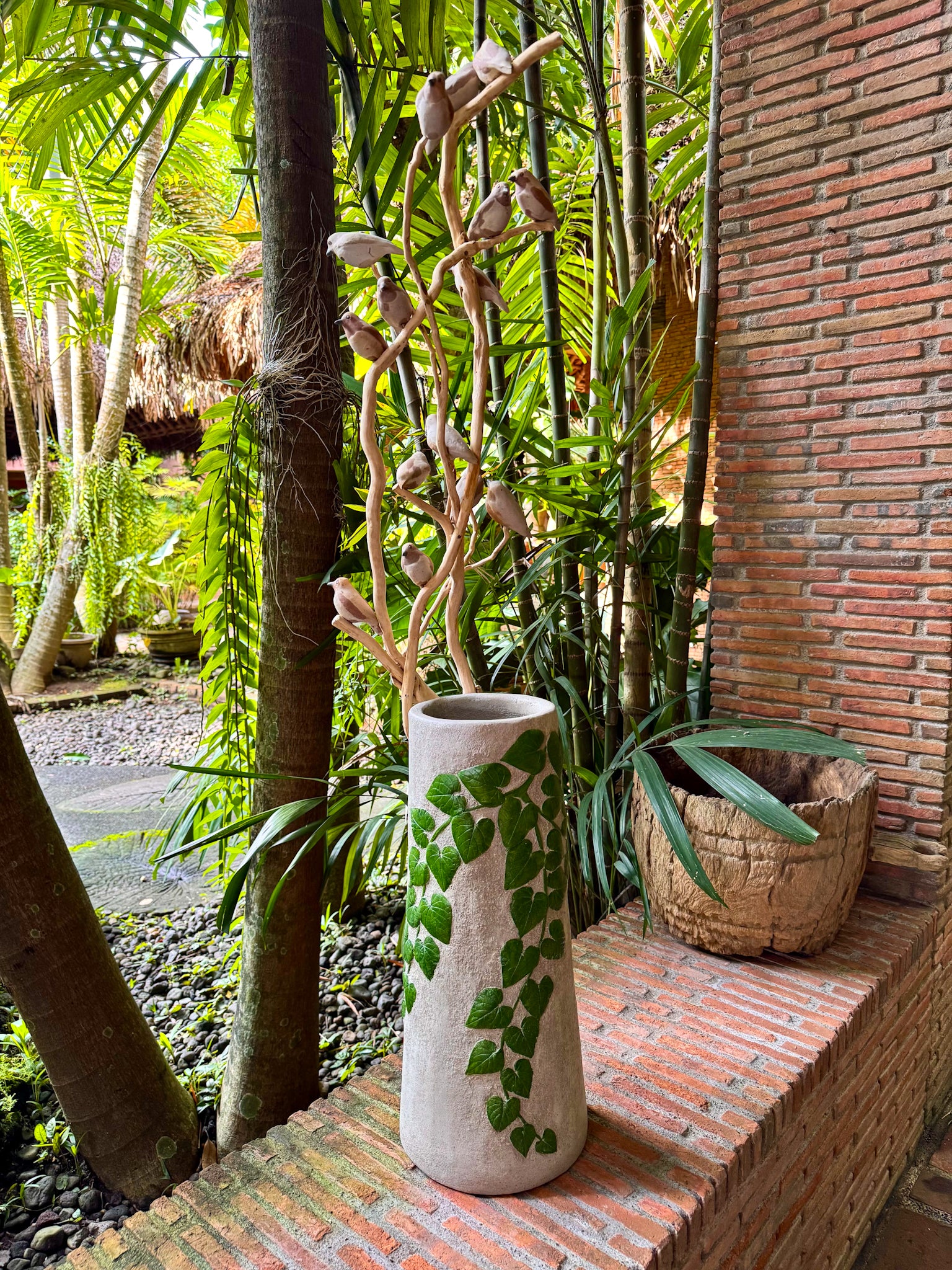 Hand-painted Woodstone Vase with Birds on Roots